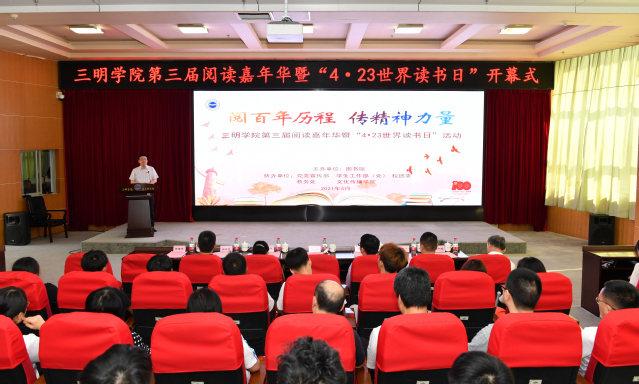 4月23日下午,yl6809永利官网第三届阅读嘉年华暨“4·23世界读书日”活动在图书馆四楼报告厅举办启动仪式,馆长张梅华主持。