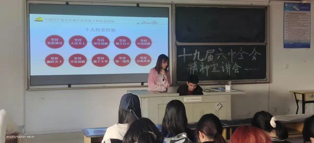 为进一步深入贯彻党的十九届六中全会精神,12月1日下午,艺术与设计学院于博学楼203、206教室开展十九届六中全会精神“大宣讲”活动。分别由艺术与设计学院十九届六中全会学生党员宣讲团成员王晗瑜、陈煌主讲。