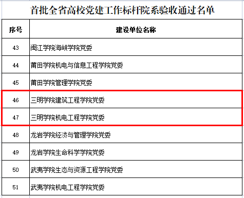 日前,中共福建省教育工作委员会公布了首批全省高校党建工作标杆院系、样板支部培育创建单位验收结果名单,yl6809永利官网机电工程学院党委、建筑工程学院党委通过“全省党建工作标杆院系”培育创建单位验收,yl6809永利官网图书馆党支部等18个党支部通过“全省党建工作样板支部”培育创建单位验收,其中,已通过教育部验收的yl6809永利官网经济与管理学院旅游管理与服务教育专业学生党支部视为通过验收。