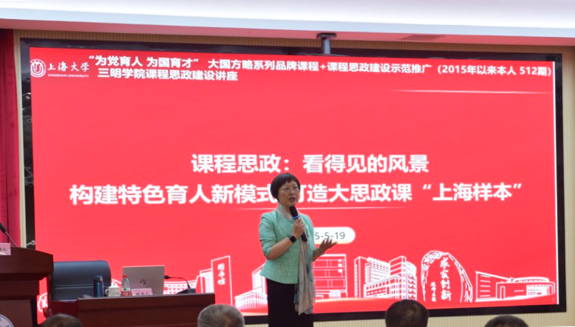 在专题培训中,顾教授以《课程思政:看得见的风景--构建特色育人新模式 打造大思政课“上海样本”》为题,分享了课程思政建设的“12344”体系构建之路,从课程思政的顶层设计到系列课程的策划打造,从思政融合的巧妙构思到课堂教学的实践落地,以丰富的实例剖析课程思政如何从理念倡导走向深耕扎根,阐释“知识点”与“思政点”同频共振的方法论。
