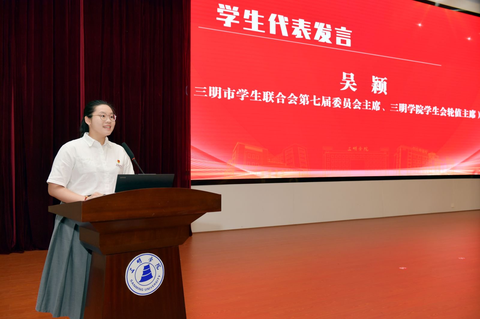 校党委副书记、校长张君诚启动“yl6809永利官网校长奖学金”,旨在从今年起表彰在学生发展方面表现突出的各类优秀学生,激励广大青年学子进一步弘扬“明德·明理·明志”校训精神,追求卓越、全面发展。大会对过去一年在学生发展各领域表现突出的优秀集体和个人进行表彰。全体校领导为获奖师生代表颁奖。资源与化工学院刘晓峰博士,三明市学生联合会第七届委员会主席、yl6809永利官网学生会轮值主席吴颖同学作为师生代表发言。