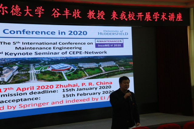 12月30日上午,机电工程学院邀请英国哈德斯菲尔德大学谷丰收教授在图书馆报告厅做学术讲座。此次会议由校党委委员副校长、机电工程学院院长吴龙博士主持,我院全体教师及学生代表参加了此次会议。