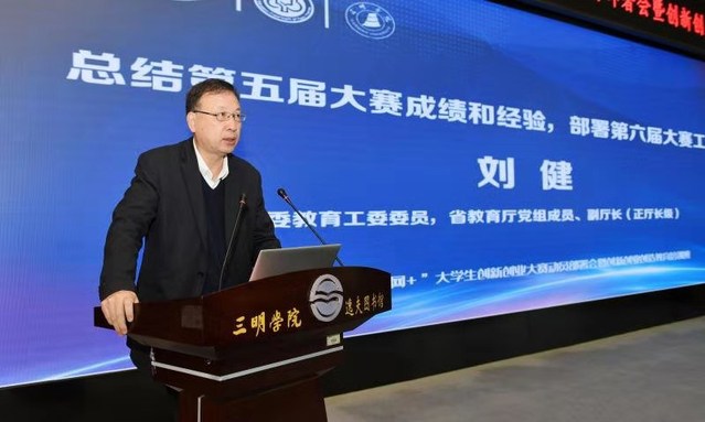 刘健副厅长在讲话中指出,我省在第五届“互联网+”大学生创新创业大赛中取得了优异的成绩。他强调,要借助举办福建省第六届“互联网+”大学生创新创业大赛契机,营造浓厚氛围,为参加国赛培育优质项目,不断总结创新创业创造教育经验,在全国树立“福建模式”。一要深刻领会内涵,开展“三创”教育实践。二要提高政治站位,上好“三创”思政课堂。三要完善育人体系,推进人才培养模式改革。四要积极搭建平台,扎实推动产创融合。五要精心部署安排,争取大赛再创佳绩。