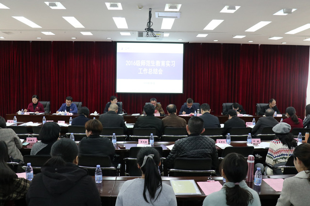 1月3日上午,我校在行政楼八楼会议室召开2016级师范生教育实习工作总结会。校领导赖锦隆副书记、张君诚副校长,师范学部、人事处、教务处、发规处、计财处负责人,相关学院分管领导、系主任、教学法课程教师,实习带队指导教师、2016级实习生代表和2017级师范生代表参加了会议,会议由师范学部常务副主任张新文主持。