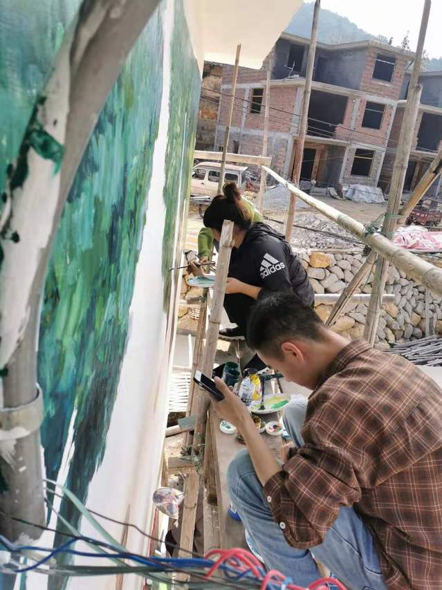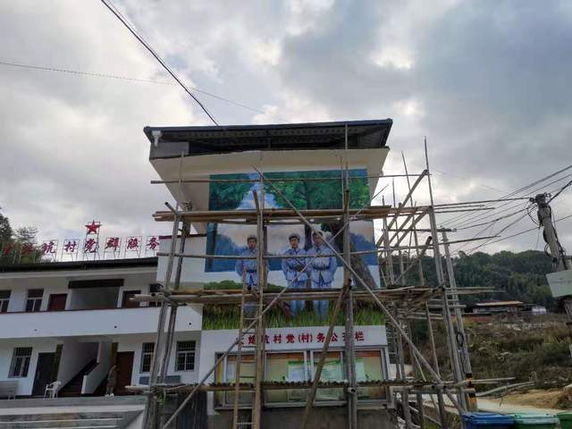 一到大培村,党员们便投入到精心大的准备工作里,老师与同学们通过集体协商确定了选择作画区域,确定以“中村的游击队”等一系列的绘画主题,起稿、细描、上色……志愿者们有条不紊挥洒自如。最后,一幅幅栩栩如生、惟妙惟肖的墙绘作品呈现在广大村民面前。墙绘过程中,社区里的村民前来欣赏助阵,看到画中的游击队战士,忍不住和学生聊起了老一辈的故事,感叹到几十年来来祖国翻天覆地的变化。