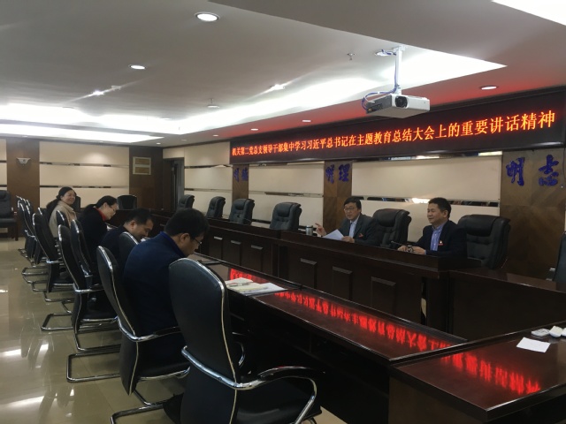 1月13日,机关第二党总支在行政楼四楼会议室召开学习会,集中学习研讨习近平总书记在“不忘初心、牢记使命”主题教育总结大会上的重要讲话精神,总支处级及以上干部参加了会议。