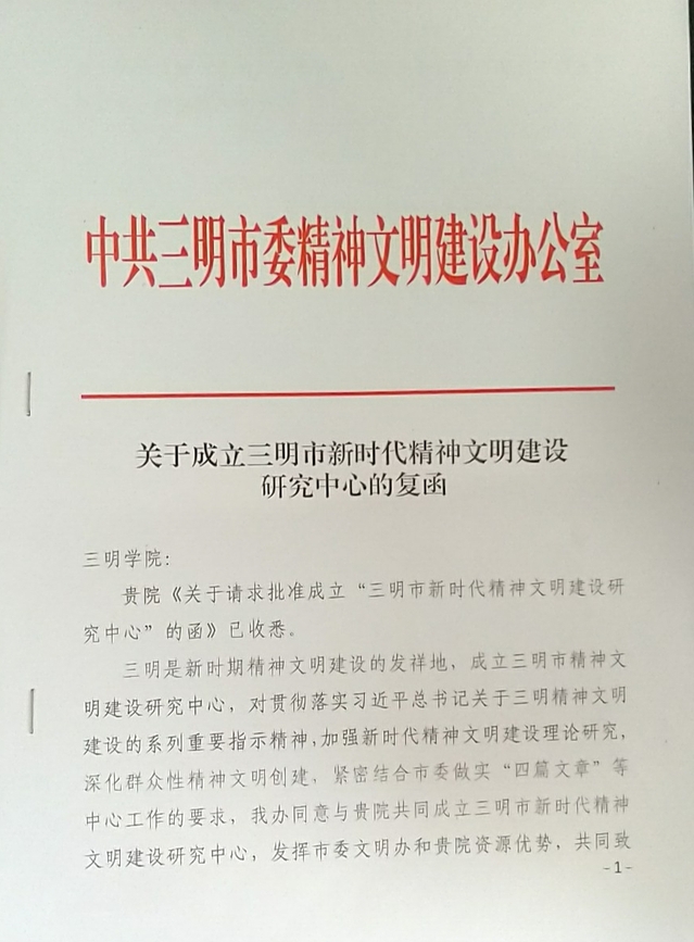 2月24日,经中共三明市委精神文明建设办公室批复,“三明市新时代精神文明建设研究中心”成立并挂靠我校。