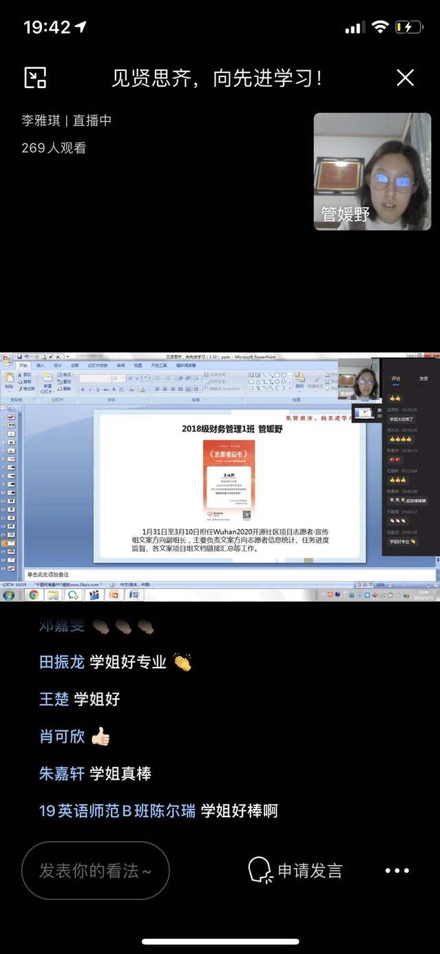 3月19日晚,海外学院(外国语学院)召开了“见贤思齐 向先进学习”为主题的志愿者宣讲会,本次会议由辅导员李雅琪、陈旭线上主讲,学院2019级全体学生参加。