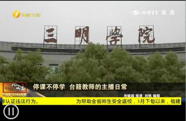 黄鹏介绍,尽管其他台籍教师还未回到学院,但是他们也同步出现在学生们的网课上。为让学生保持上课的兴趣,他像网络主播学校网络交流技巧,透过丰富的肢体语言、网络互动以及引入慕课视频、网课的学习方式得到了学生们的认可。