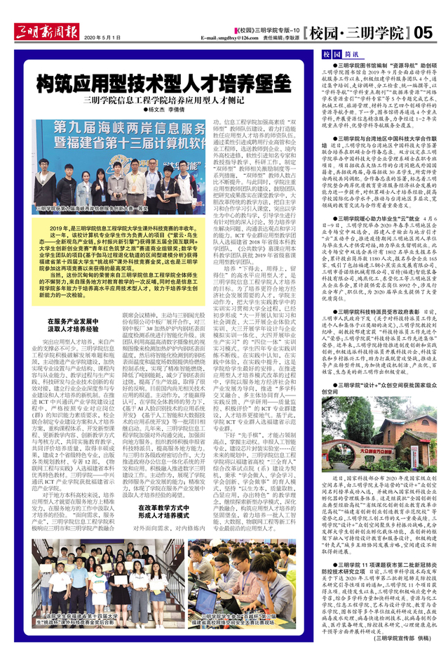 【三明新周报】构筑应用型技术型人才培养堡垒——yl6809永利官网信息工程学院培养应用型人才侧记
