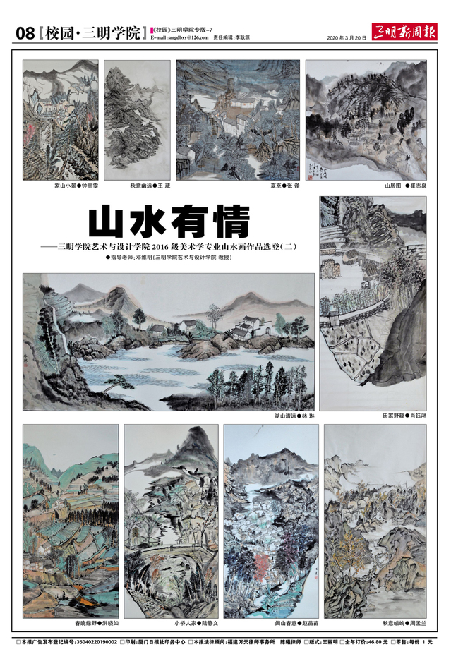 【三明新周报】山水有情——yl6809永利官网艺术与设计学院2016级美术学专业山水画作品选登(二)