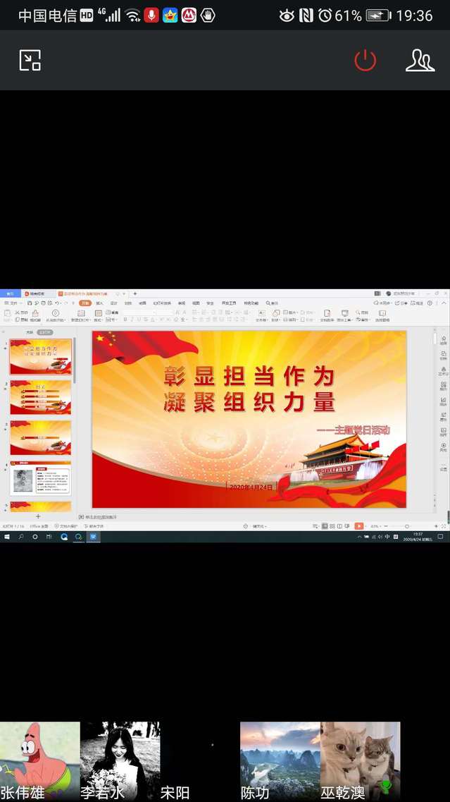 在疫情防控期间,为激励每位党员在特殊时期不畏艰险,勇担使命,积极发挥先锋模范作用,4月24日晚,体育与康养学院学生党支部以线上形式开展“彰显担当作为,凝聚组织力量”主题党日活动。