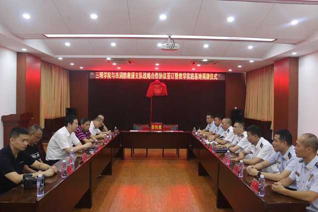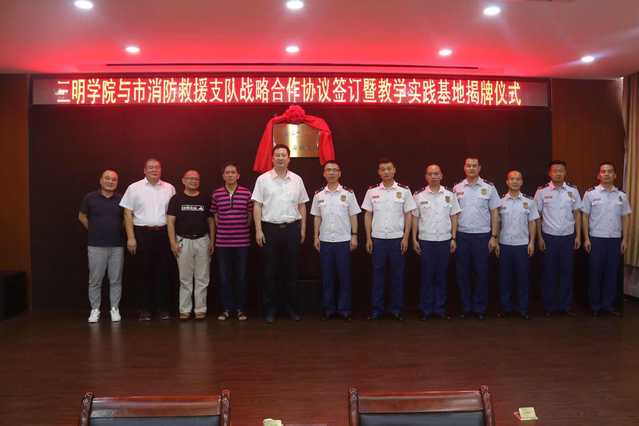 6月4日下午,我校与三明市消防支队举行战略合作洽谈暨教学实践基地揭牌仪式。三明市消防支队政委郭伪鸿、副支队长林仕、林运鑫出席了签约仪式。副校长吴龙及相关单位负责人、教师代表参加了签约仪式。