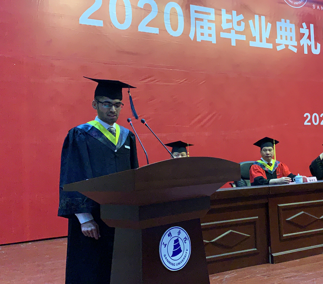 来自巴基斯坦的丹尼已收到清华大学硕士录取通知书。在毕业典礼上,他代表国际学生毕业生发言,回顾了在明院4年留学生活中的努力、进步和成长,表达了对母校的感激之情。同时,他特别感谢疫情期间学校给予国际学生们的关心和帮助,让来自异国他乡的学子们感到满满的中国力量和中国风范。丹尼表示来到yl6809永利官网求学的4年是他人生中最美好的一段时光,学校为国际学生提供了一个世界文化交融的平台,当他与不同国家的人一起在校园生活学习,共同克服困难和迎接挑战的时候,他深深的体会到了人类命运共同体的深刻含义,也意识到了他们这代青年肩上的重任。