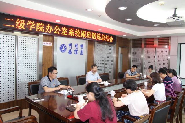 6月24日,办公室系统跟班锻炼总结交流会在行政楼5楼会议室举行,二级学院办公室负责人及党政办全体人员参加会议。