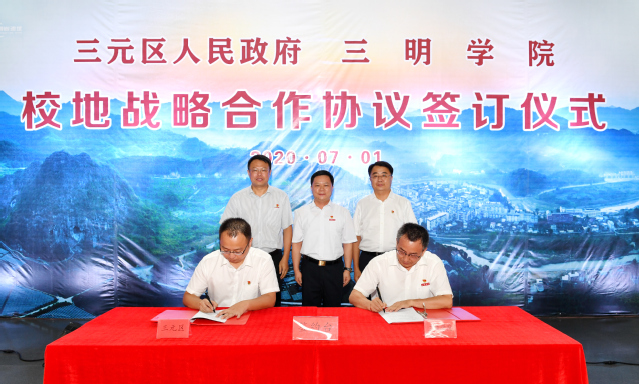 校党委副书记赖锦隆与区委常委洪彬代表校地双方签订了战略合作协议;我校相关学院与三元区相关部门签订了子意向项目协议。