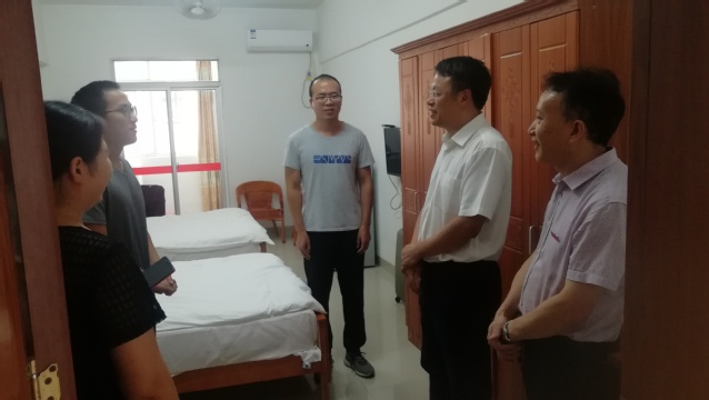 8月6日下午,校长潘玉腾到留学生楼分别看望已报到的2020届教育科研类引进生,人事处、信息工程学院、资源与化工学院、建筑工程学院等负责人陪同。