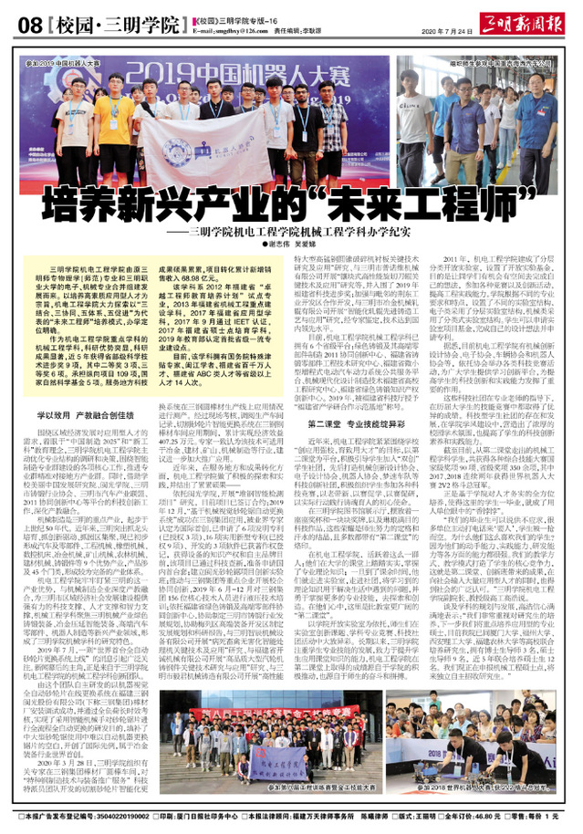 【三明新周报】培养新兴产业的“未来工程师”
