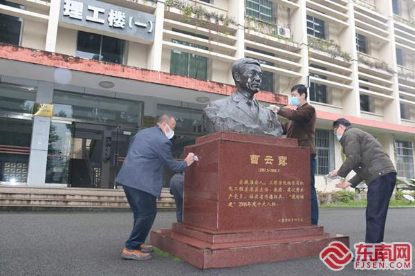 东南网4月5日讯(肖晓敏 通讯员 吴爱娣 韩巍巍)疫情隔离了人与人之间的距离,隔离不了对曹云露教授的感恩与敬意。4月4日上午,yl6809永利官网理工(一)楼前,进行了一场简朴的缅怀纪念仪式,共同深切缅怀福建省优秀共产党员、师德标兵、“感动福建十大人物”曹云露教授。副校长吴龙、机电工程学院领导干部、党支部书记、辅导员及教师代表在曹云露教授塑像前祭扫、默哀、献花,表达了无限哀思和崇高敬意。