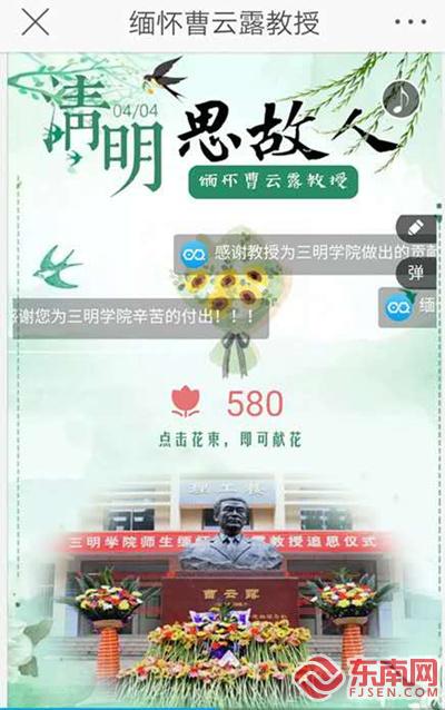 线上线下共缅怀,老师学生同追思。与此同时,机电工程学院微博、易班开展了线上“缅怀曹云露教授”追思仪式。“曹云露教授的‘三平精神’会一直激励着我们这些明院学子,我们也会记住教授对教育事业的献身!”“作为明院学子,我们会一直在‘三平’精神的激励下,努力成才,回报学校,回报祖国。”“让我们静静的追思,深深地缅怀,把最深情的思念和最崇高的敬意,寄托在这鲜花中,让它陪伴在曹云露教授的左右。”献一束花,寄一份追思。穿越时空地域的网络祭奠,让师生的追思更为悠远。