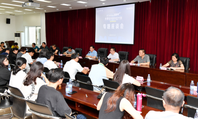 座谈会上,三创学院、职能部门、有关学院负责人以及获奖师生代表,分别从组织、办赛、备赛、参赛等不同层面、不同角度作了工作交流、心得分享和建言献策。学工部、校团委、校友会、信息工程学院、文化传播学院、艺术与设计学院等相关负责人以及获奖团队师生共80余人参加了座谈会。