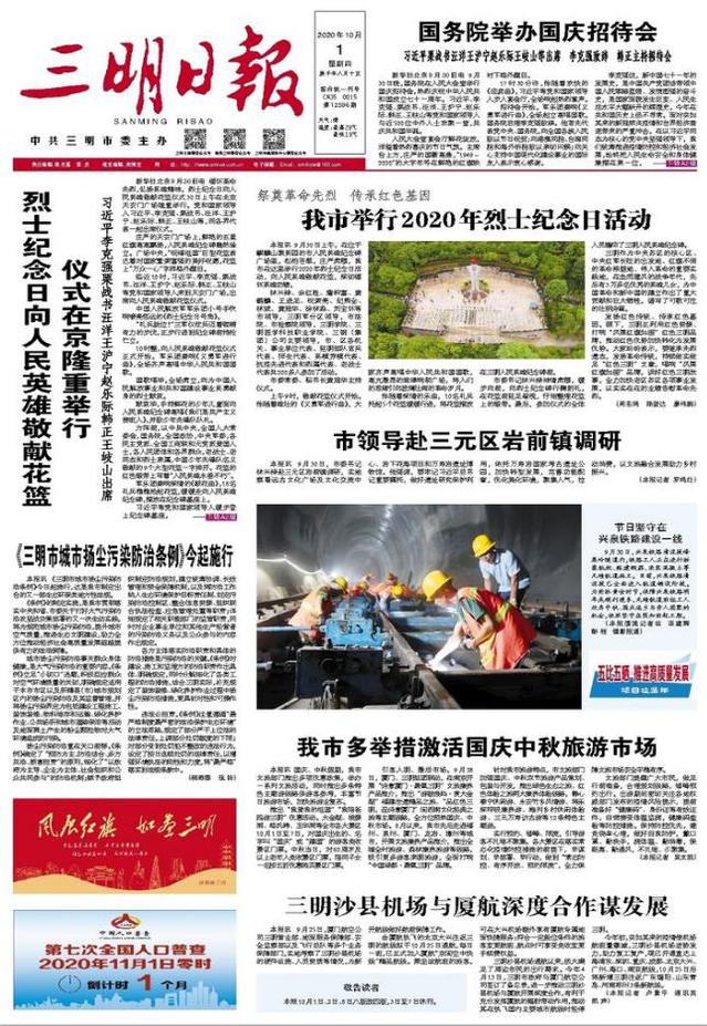 (三明日报 2020年10月1日,周志鸿 陈登达 廖伟鹏)