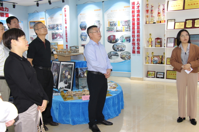 座谈会前,检查组一行参观了我校闽台合作办学成果展。