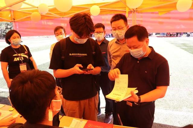 新生提着行李进入学校,通过检测体温和学院迎新站点报道后,有秩序地在北区排起乘坐电动接送车的长队。等待已久的志愿者毫不吝啬自己的力气将新生的行李搬到接送车上,不仅如此,新生在接送车到达目的地还未下车时,各个学院的负责人已经举着牌子迎接他们。在每个路口都有志愿者为新生指引方向,整个校园的各个角落都遍布着“红色马甲”,为校园多添加了一丝爱的气息。新生要入住的宿舍也已经在前几天内由学长学姐们进行了严格地消毒打扫,看似空荡的宿舍到处都流淌着“家”的味道。学长学姐们就像是新生大家庭中的一份子,当然,还有一边默默工作的辅导员们,他们在大本营招呼着新生的到来,一直在帐篷里守候着,让每一个新生到来时,看到的场面都是挥手与欢迎。今天整个校园所散发出来的活力仿佛点燃了校园的生活,门卫、小白师傅、快递入库人员,还有数不尽的帮忙着的师生,这副景象可谓是欣欣向荣。