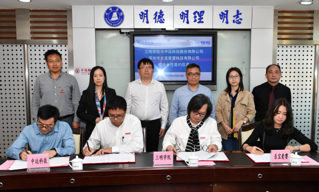 信息工程学院、三创学院代表学校与深圳中运科技股份有限公司、深圳市乐宝爱婴科技有限公司签署了校企合作协议书。