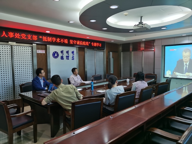 10月27日下午,人事处党支部在行政楼五楼会议室开展“抵制学术不端,坚守诚信底线”专题学习教育活动,校长潘玉腾,以及支部全体成员参加学习。
