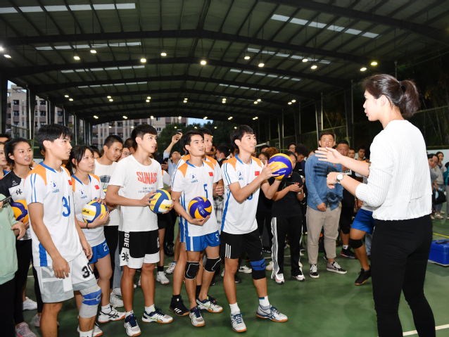 报告结束后,徐云丽走入学校排球场,与正在训练的师生分享运动心得,交流动作技法,并与同学们开展了一场接抛扣大接龙,听闻消息的小粉丝们纷纷涌入球场,期待近距离接触偶像,有些同学还特地换上了运动服,加入接龙的队伍。