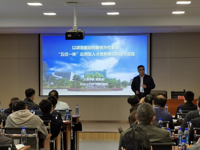 张君诚以“以项目驱动创新班为引擎的‘五位一体’应用型人才培养模式构建与实践”为题,从yl6809永利官网应用型人才培养改革历程、“五位一体”人才培养模式设计与运行、“五位一体”人才培养模式实践与成效三方面展开报告。他指出,yl6809永利官网通过创设项目驱动创新班,并以此为引擎,构建专业群、产业学院、应用型教学团队和课程有机协同的“五位一体”应用型人才培养新模式,有效提升了应用型人才培养能力和质量。