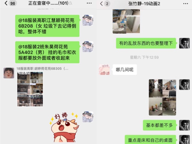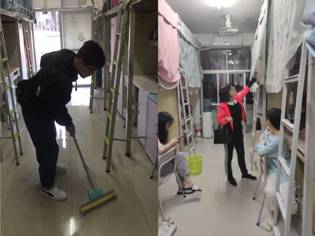 “同学这个电线不能乱放哦!这样放置是及其不安全的!”11月7日,艺术与设计学院领导深入学生宿舍进行文明校园督察。本次检查主要对学生宿舍环境卫生、室内物品摆放和违规用品进行现场督促检查和整治。所到之处,督查小组都非常仔细,对发现的问题逐一提出整改要求。同时,艺术与设计学院各位辅导员也在班级建立督察小分队,设置一男一女卫生小委员,通过线上拍照线下查访不定期对艺术与设计学院学生宿舍进行督察。