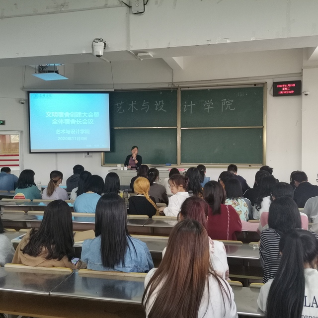 为深入推进文明校园建设,落实“三明三康”教育理念,营造干净、整洁、舒适的宿舍环境氛围,优化我院学生宿舍卫生环境,营造良好宿舍学习生活环境,促进文明校园建设。11月艺术与设计学院开展文明宿舍动员督查活动。大会情切 动员大会增强意识。