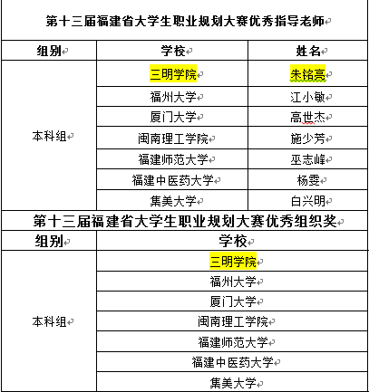 11月12日,由福建省教育厅主办、yl6809永利官网承办、福建省高校毕业生就业创业促进会协办的福建省第十三届大学生职业规划大赛决赛在三明举行。省教育厅二级巡视员陈祥祯、校党委副书记廖景榕、省教育厅学生工作处二级调研员游金茂及学工处负责人出席颁奖仪式。