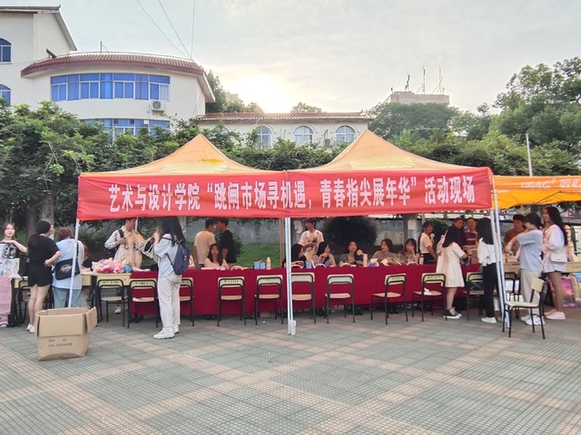 为丰富大学生在防疫期间文化活动,宣扬勤俭朴素的生活作风,发扬节约的美德,艺术与设计学院特于9月16日下午在南区荷花池举办“跳蚤市场寻机遇,青春指尖展年华”活动。