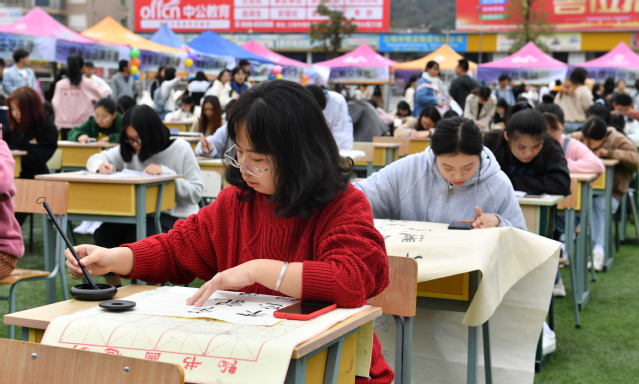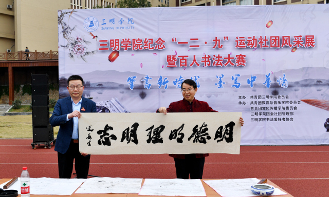 12月9日下午,由校团委主办、教育与音乐学院团委、文化传播学院团委承办的“笔书新时代,墨写中华情”纪念12.9运动八十五周年社团风采展暨百人书法大赛在校北区田径场举行。校党委廖景榕副书记,学工部、团委负责人,教育与音乐学院党政负责人、二级学院团委书记等师生代表参加了活动。