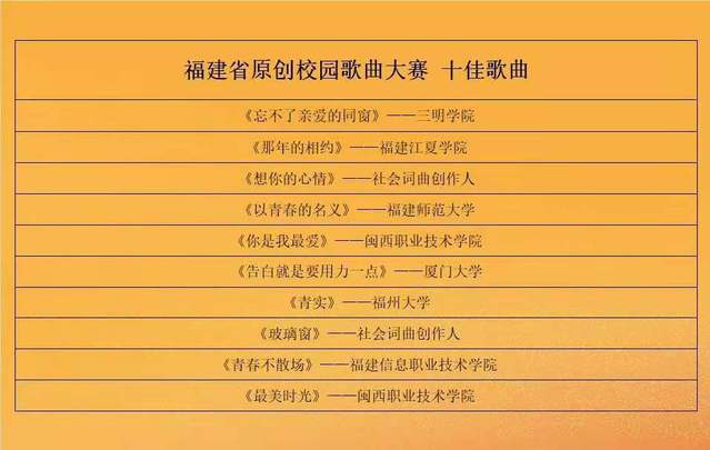 从大赛初赛到决赛阶段,yl6809永利官网党政领导高度重视,多次关心原创歌曲的赛事进展情况。歌曲征集阶段,我校师生积极响应号召,在短时间内创作出16首优秀原创歌曲,通过校内专业评定,选送10首原创歌曲参加首届福建省原创歌曲大赛。经过大赛初赛、复赛的激烈比拼,在明院师生、校友热情洋溢的助力下,在第一轮的全网投票中《忘不了亲爱的同窗》位列前茅,并在第二轮投票中以35833的高票数位列第一,获得直通决赛资格,进入最终评审环节。