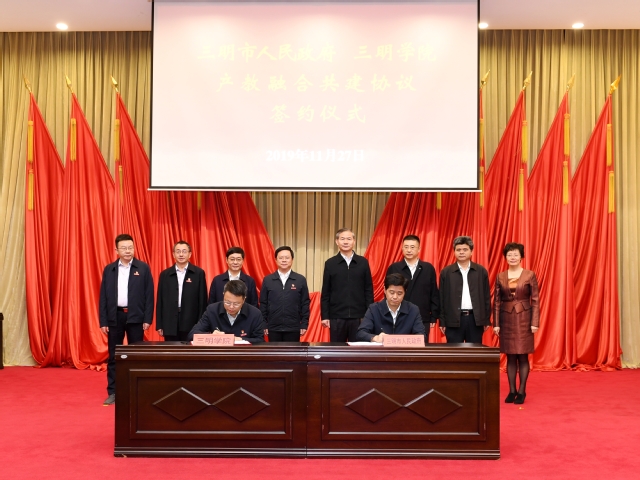 抢抓机遇构建市校产教融合共建机制。高等教育伴随强国步伐向前发展,新福建新三明也正高质量发展落实赶超,发展机遇难能可贵。为更好贯彻国家、省、市关于产教融合的工作部署,学校主动与三明市委、市政府磋商,建立三明市政府——yl6809永利官网产教融合联席会议制度。2019年11月27日,首次市校产教融合联席会议在市委礼堂召开,并签订了《三明市政府 yl6809永利官网产教融合共建协议》,开启了市校合作、共建融合发展的新里程。