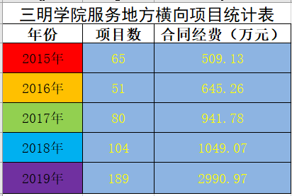 得益于产教融合发展,政校企沟通交流更加顺畅、关系更加密切、合作项目和经费逐年攀升。2015年-2019年,服务地方横向项目累积近500项,经费达6136.21万元。
