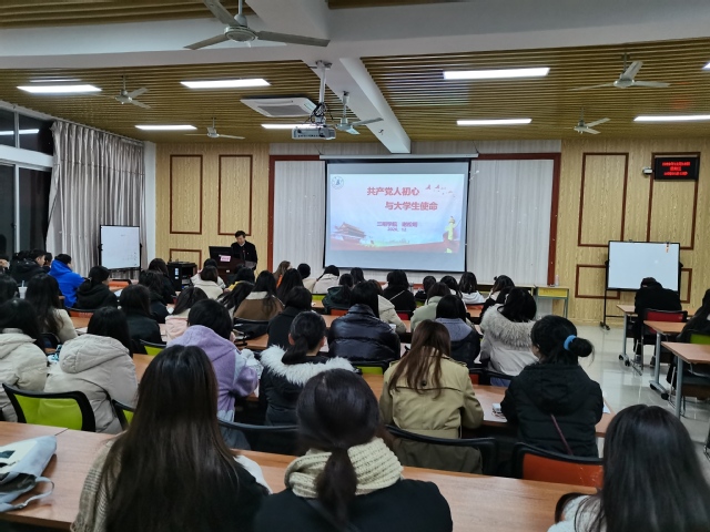 党课以“共产党人初心与大学生使命”为题,从不忘初心:中国共产党历史使命,信念坚定:“不忘初心”时代内涵,永葆本色:共产党人不懈追求三个层面展开。谢松明副校长从中国古今的治理体系的演变和近现代史中为学生党员剖析共产党人的历史使命和初心的时代内涵。嘱托学生党员,作为青年共产党人,一要不忘初心,坚定人生理想信念;二要心系祖国,以造福天下为己任;三要独立思考,冷静客观地看世界;四要勇于创新,超越自我超越前人;五要砥砺前行 ,用奋斗来书写青春。希望学生党员做好自己并带领身边的同学积极践行“三明三康”的倡导,珍惜大学时光,发奋刻苦学习,努力做到明德致善、因德而美,明理致用、因理而强,明志致远、因志而成。