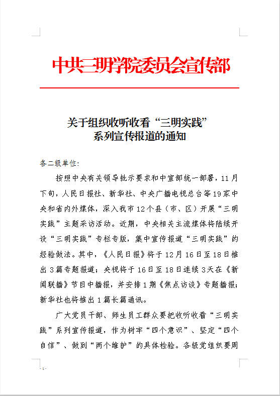 关于组织收听收看“三明实践”系列宣传报道的通知