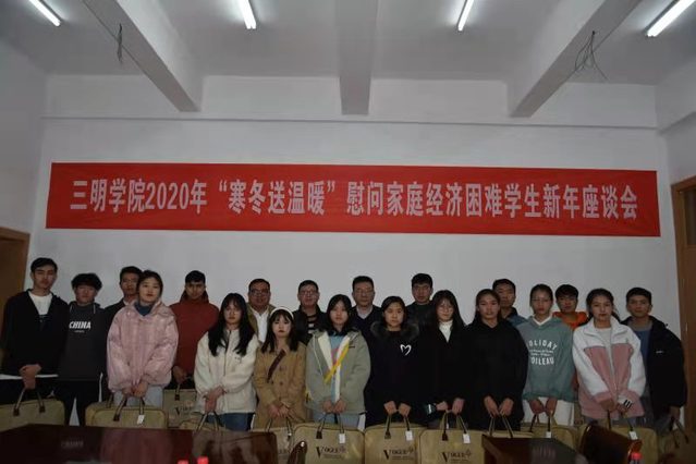 寒冬时节送温暖,浓浓关爱显真情。12月30日下午,我校“寒冬送温暖”慰问家庭经济困难学生新年座谈会在南区学生活动中心二楼会议室举行。校党委副书记廖景榕和家庭经济困难学生代表们齐聚一堂,共度元旦佳节。