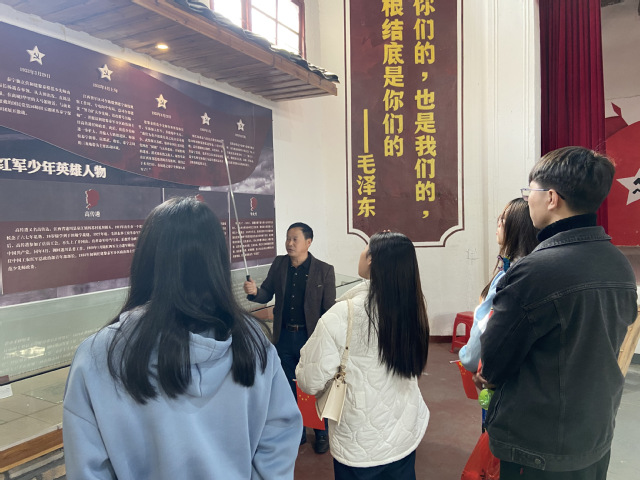 2021年1月24日,教育与音乐学院7名来自小学教育专业的同学进入泰宁县大田乡开展社会实践。参观“中央红军村”“红军桥”大田区革委会区、苏维埃政府旧址等红色革命遗址,讲解员范老师围绕“建黎泰模范少年先锋师”和“中国工农红军少共国际师”两支与大田乡息息相关的少年红军队伍,讲述了高传遴、叶开基等红军少年英雄人物的动人事迹。