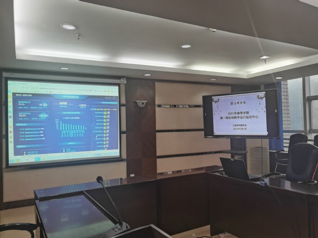 为更好地保障在线教学工作质量,各二级学院提前组织做好了详细的在线教学安排和准备,学校提前在行政楼四楼会议室布置了在线教学运行监控中心,实时监控在线教学运行情况。校领导率领教务处、校督导团等部门人员重点巡查留学生线下课堂情况,了解教师课堂授课、留学生出勤、教学设备运行,并在线查看教学运行监控中心线上教学统计情况。