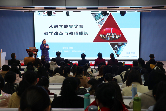 3月8日下午,张君诚副校长率教务处、师范学部、教育与音乐学院、三明市基础教育研究中心有关人员赴三明市陈景润实验小学开展与教师专业发展学校的联合教研活动,并为三元区中小学教师作题为“从教学成果奖看教学改革设计与成果凝练”专题报告。三元区各中小学校校长和教师代表约300人参加了活动。