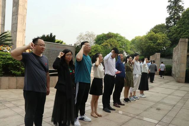 在革命烈士纪念碑前,全体党员同志默哀、献花、举起右拳庄严重温入党誓词,表达了对为保卫国家而献出青春热血的革命英烈的深深哀悼和缅怀,巩固思想根基,切身感受党内生活的仪式感和庄严感。
