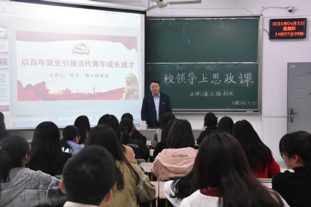 为推动党史学习教育稳步开展,加强大学生思想教育,引领青年学子成长成才,4月15日下午,校党委副书记、校长潘玉腾走进文化传播学院课堂,为学生们带来一堂生动的思想政治理论课暨党史学习教育课。