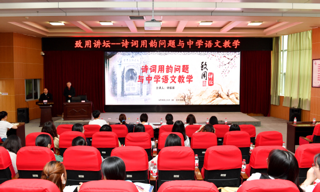 4月19日上午,南京师范大学中文系博士生导师钟振振教授受邀做客我校“致用讲坛”,作题为《诗词用韵问题与中学语文教学》专题讲座。教育与音乐学院、文化传播学院近200名学生参加此次讲座。
