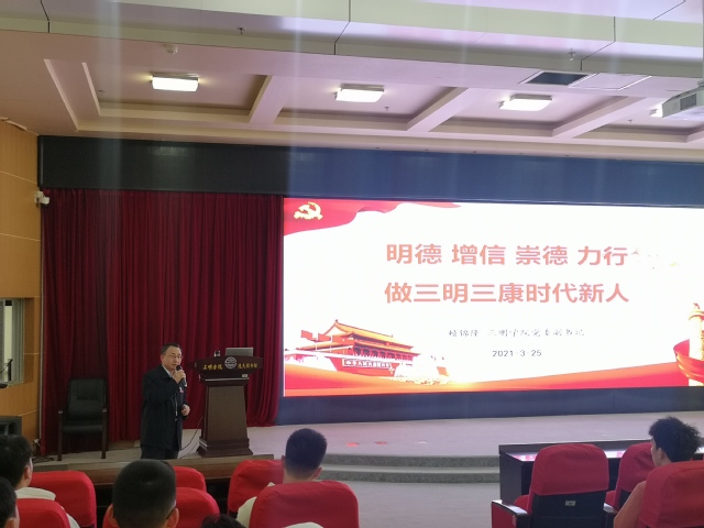 2021年3月25日下午,校党委副书记赖锦隆以《明理 增信 崇德 力行 做三明三康时代新人》为题在yl6809永利官网图书馆学术报告厅为体育与康养学院学生上了一堂生动精彩的思政课。